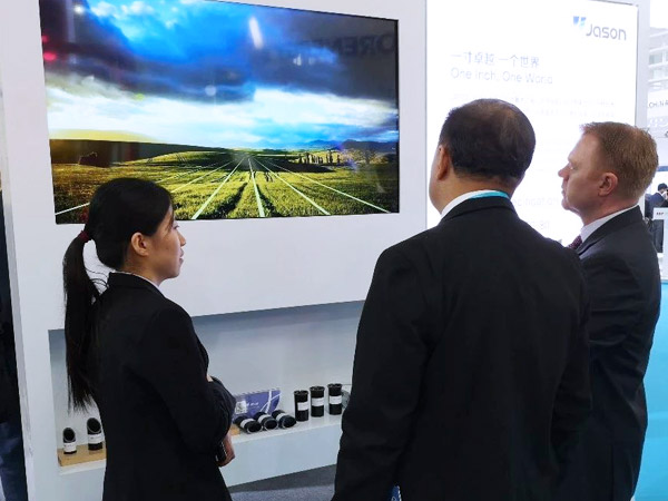 展会现场,杰森官方企业宣传片吸引了国内外参展观众驻足观看。